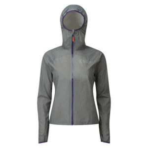 An ultra lightweight breathable waterproof jacket in a women’s specific fit that packs down to little more than the size of a tennis ball. Ideally suited to mixed conditions and constructed using slimline, fully taped seams in a 2-layer waterproof fabric. Minimalist design with full length zip, elasticated closures on the hood and wrist plus adjustable dynamic droptail to prevent riding up when worn under a pack or when scrambling.