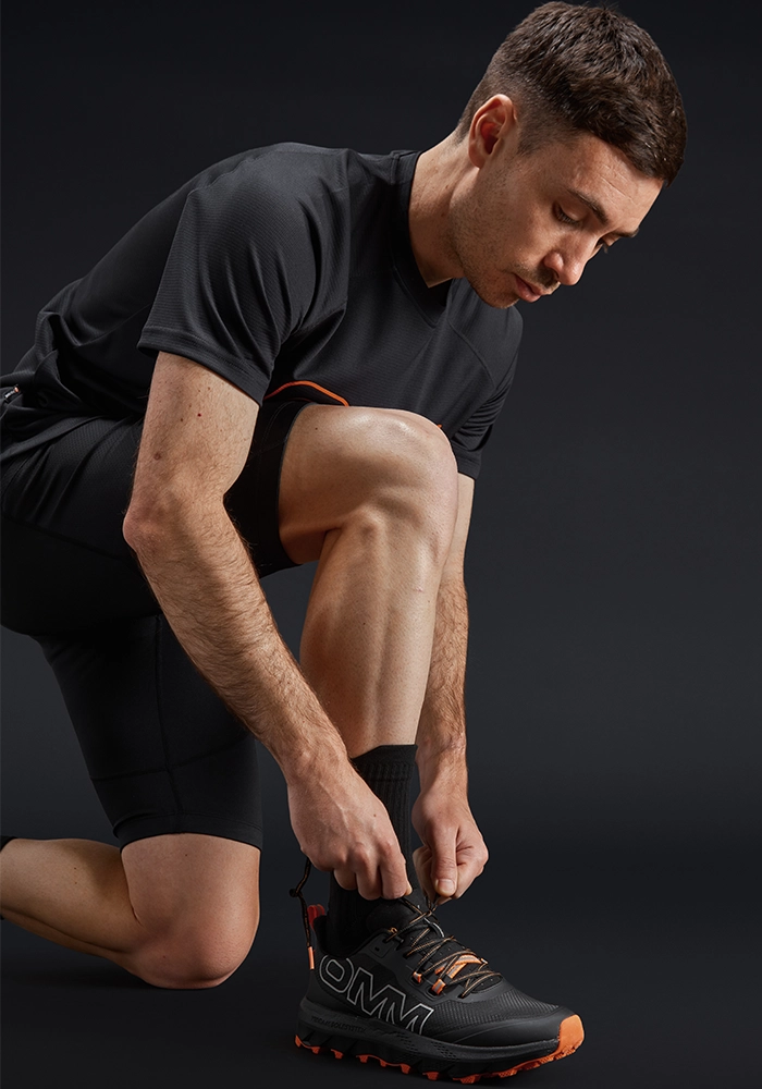 The OMM Trail Shoe is designed for runners who want to move efficiently and confidently across mixed trail terrain. It delivers the light, responsive feel needed for faster efforts, with the grip and protection required when the ground becomes more technical.