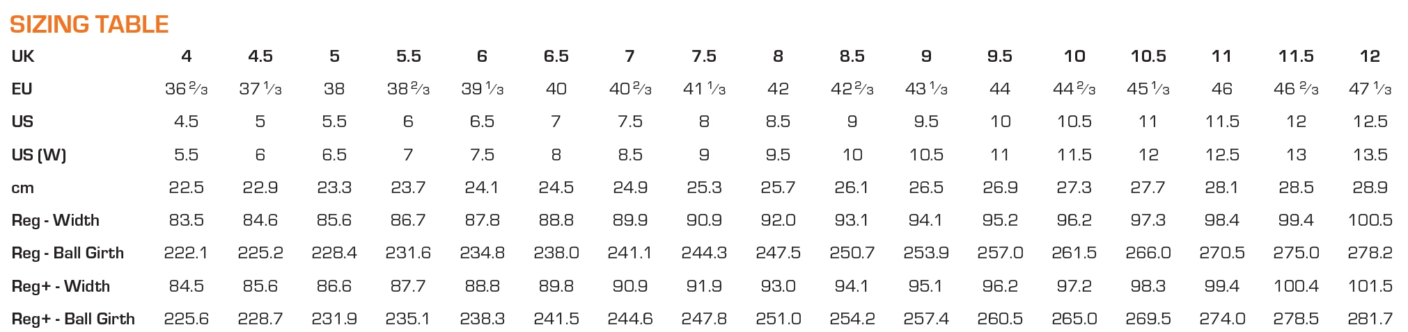 Width: Regular (Black / Black, Orange / Grey)