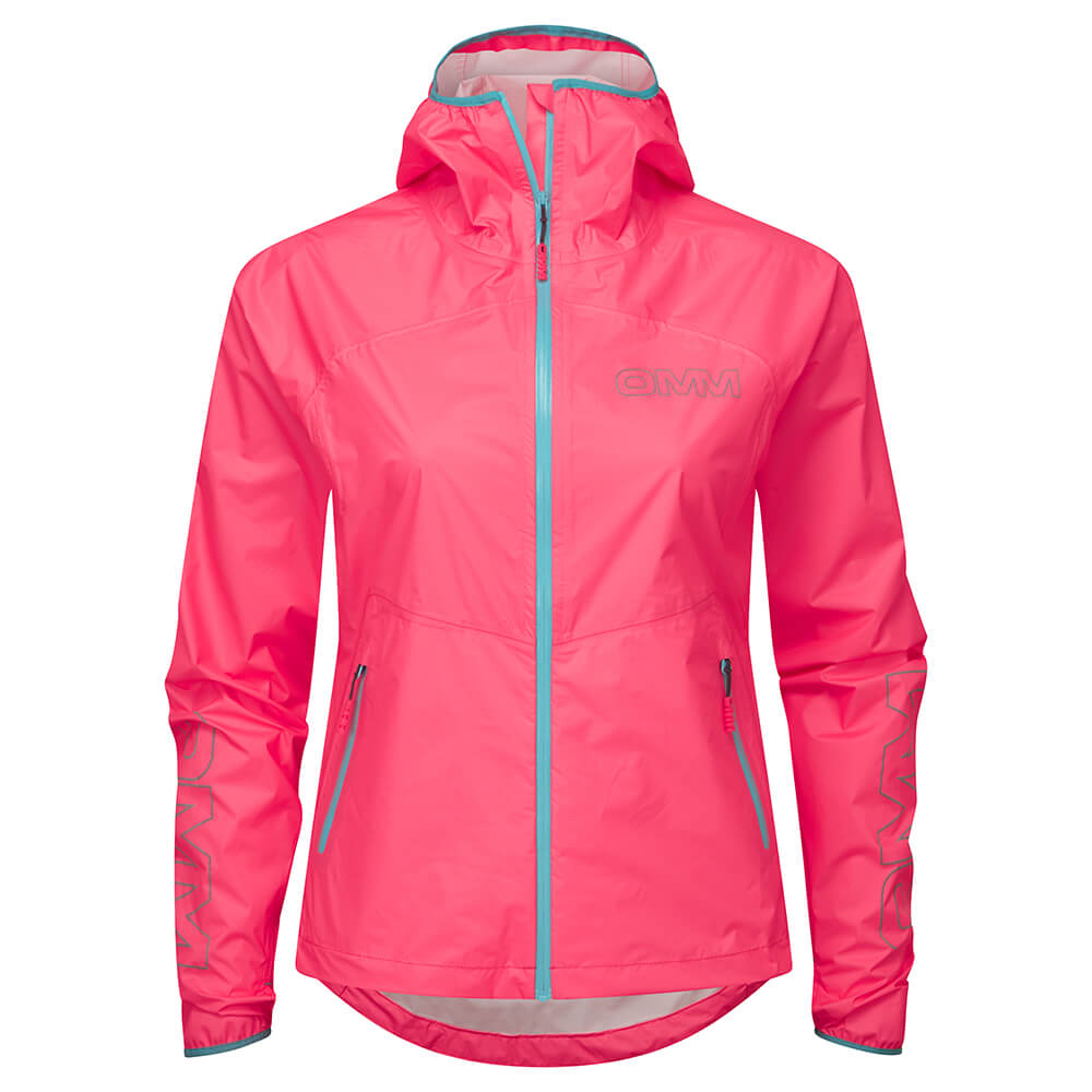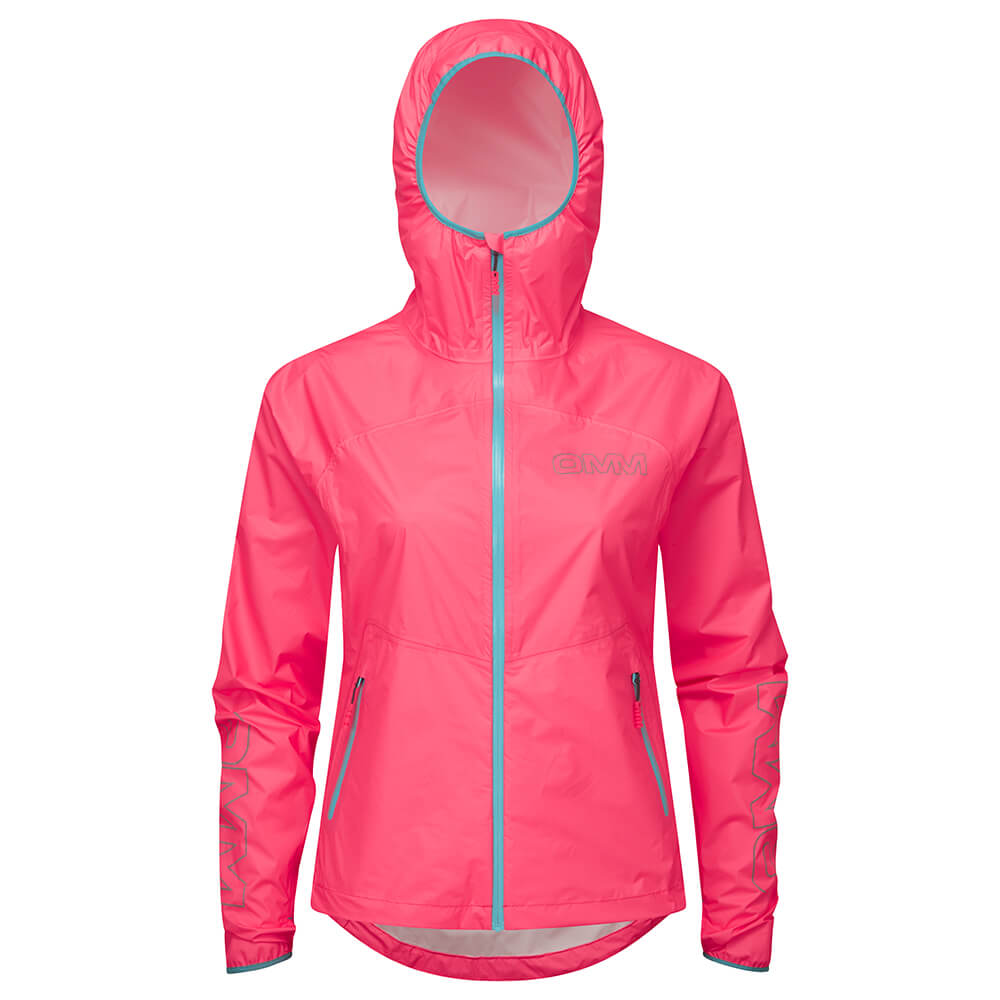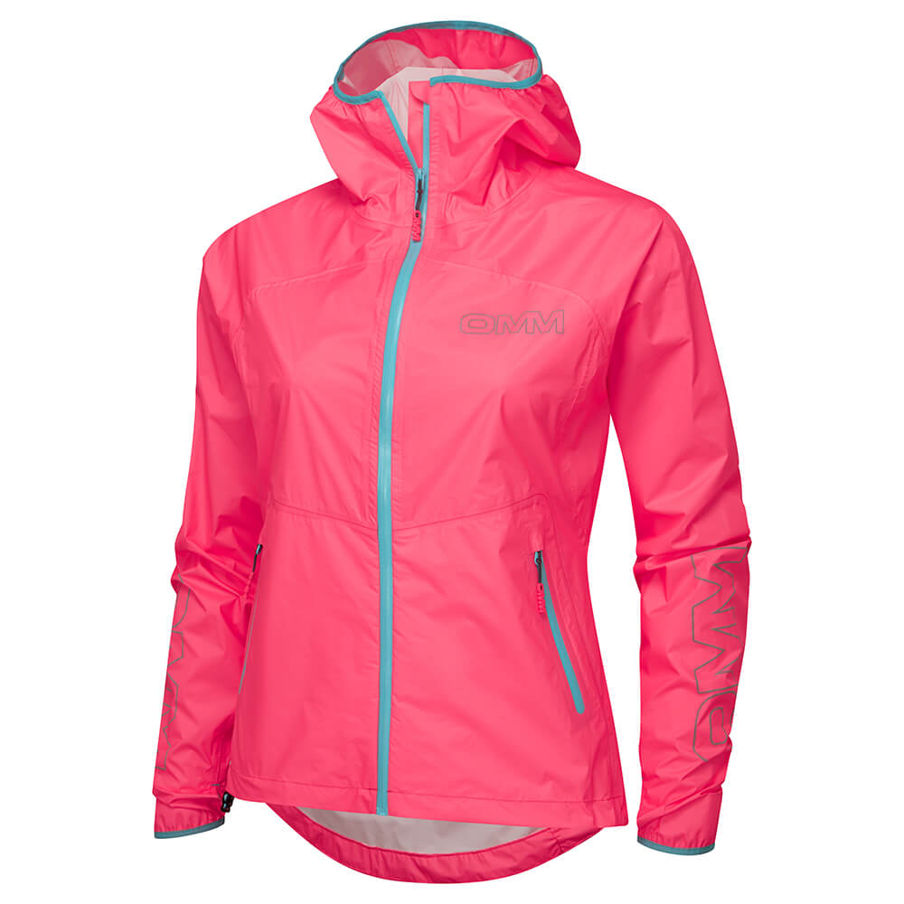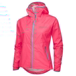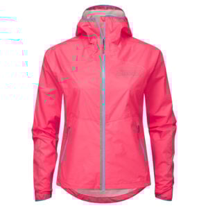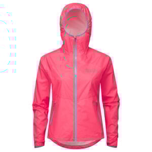 Vattentät Vindtät Smala tejpkantade sömmar Spetsig huva Hel längd YKK Aquaguard dragkedja Två blixtlåsfickor för händer Kvinnors specifika passform Reflekterande logotyper Förlängd mudd med tumhål Dynamisk nedre kant